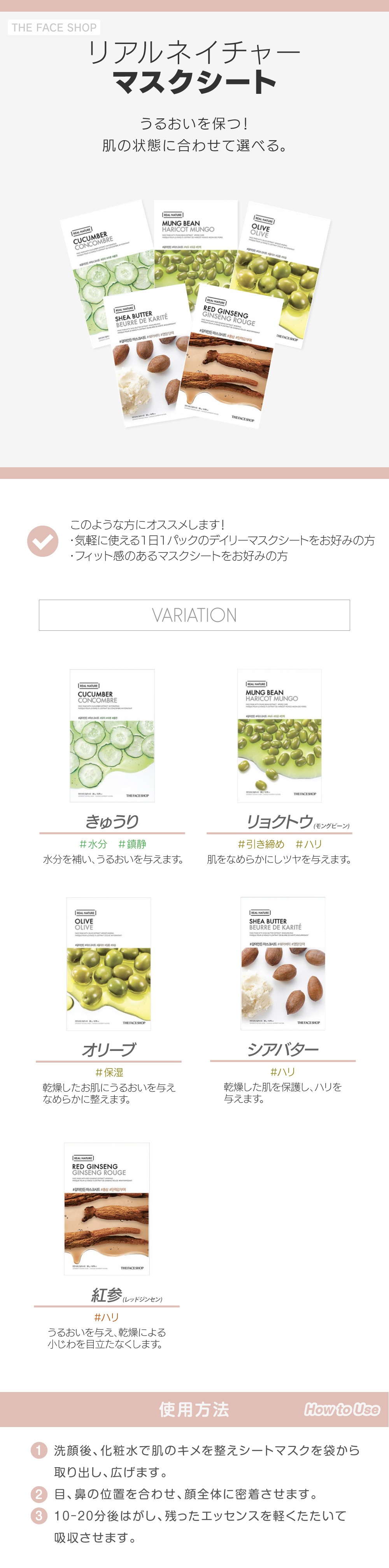 【THE FACE SHOP】 リアルネイチャーマスクシート 20g / 30入